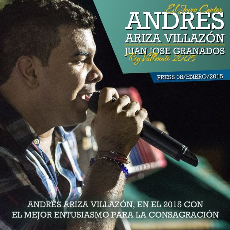 Andrés Ariza Villazón , ‘El Joven Cantor’, inicia el 2015 con el mejor entusiasmo porque será un año de grandes proyectos, sueños y realizaciones que lo llevarán a la consolidación y consagración en el panorama vallenato.