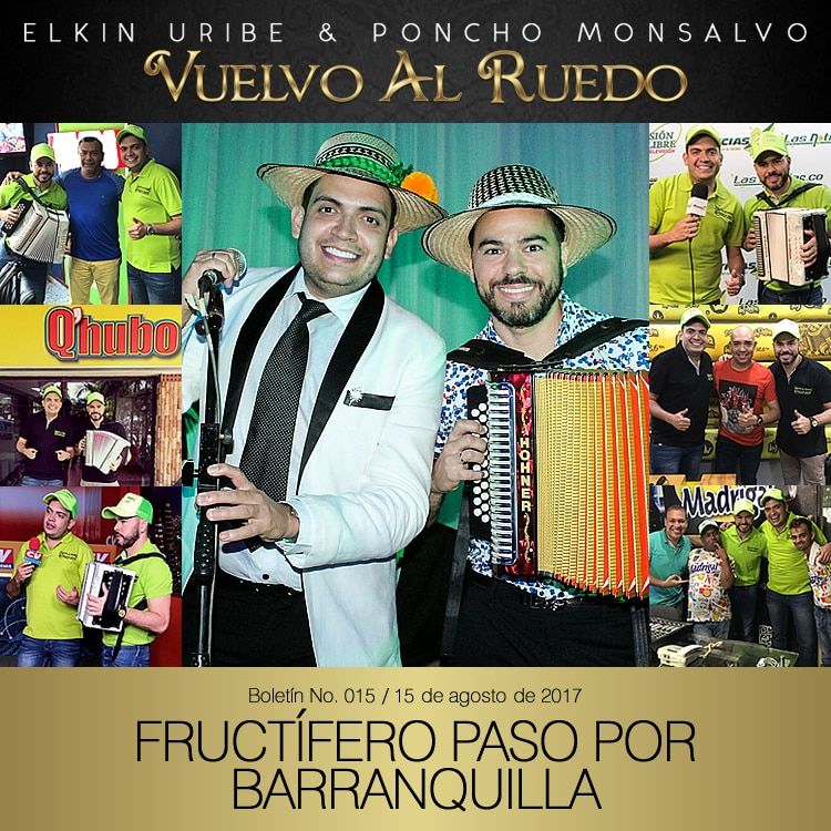 La semana pasada Elkin Uribe & Poncho Monsalvo estuvieron concentrados en Barranquilla, con el objetivo de conquistar esta importante ciudad que es punto estratégico para catapultarse en el resto de la Costa Atlántica y el país de la mano de su nuevo álbum “Vuelvo al ruedo”.