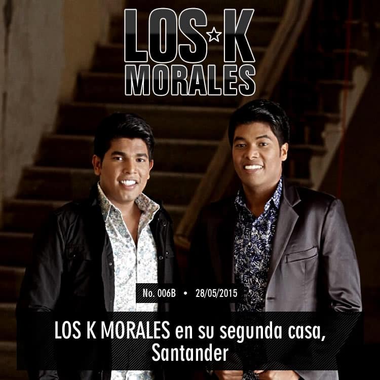 LOS K MORALES llegan esta semana a la que siempre ha sido para ellos y su familia su segunda casa, el departamento de Santander, donde el cariño y respaldo ha sido permanente, han sido acogidos como si hubieran nacido en esa bella tierra y es una zona fundamental en su carrera artística, allí nunca ha dejado de sonar su música, sus discos se venden masivamente y cuando se presentan llenan escenarios.