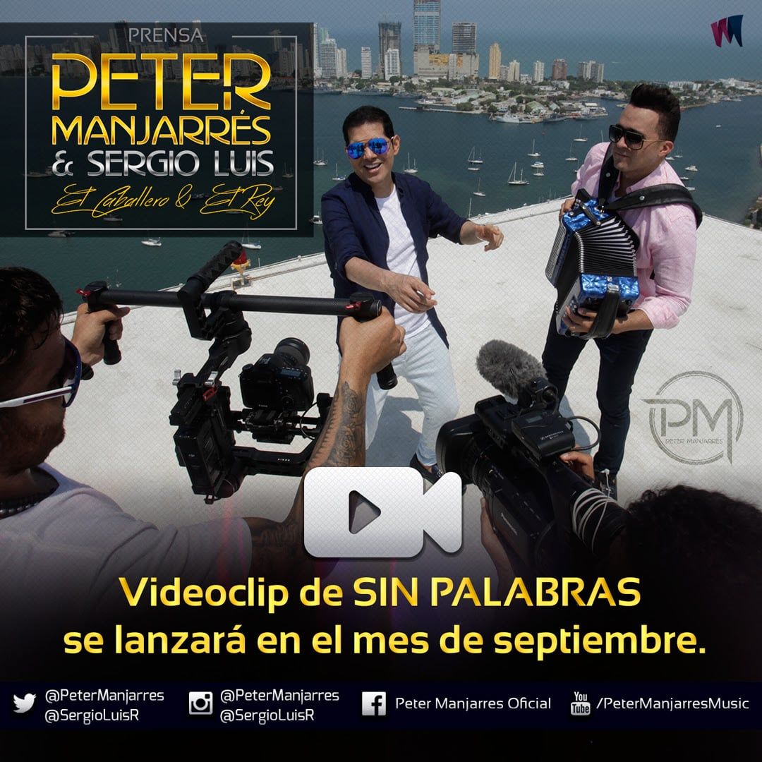 El mes de septiembre, en el cual se celebra el día del amor y la amistad en nuestro país, es el mes escogido por Peter Manjarres y Sergio Luis para hacer el lanzamiento del vídeo clip de la canción #SinPalabras, el cual fue grabado en días pasados en la ciudad de Cartagena y ya se encuentra en la etapa final de ajustes y edición para presentárselo a todo el Peterismo en Colombia y el mundo.